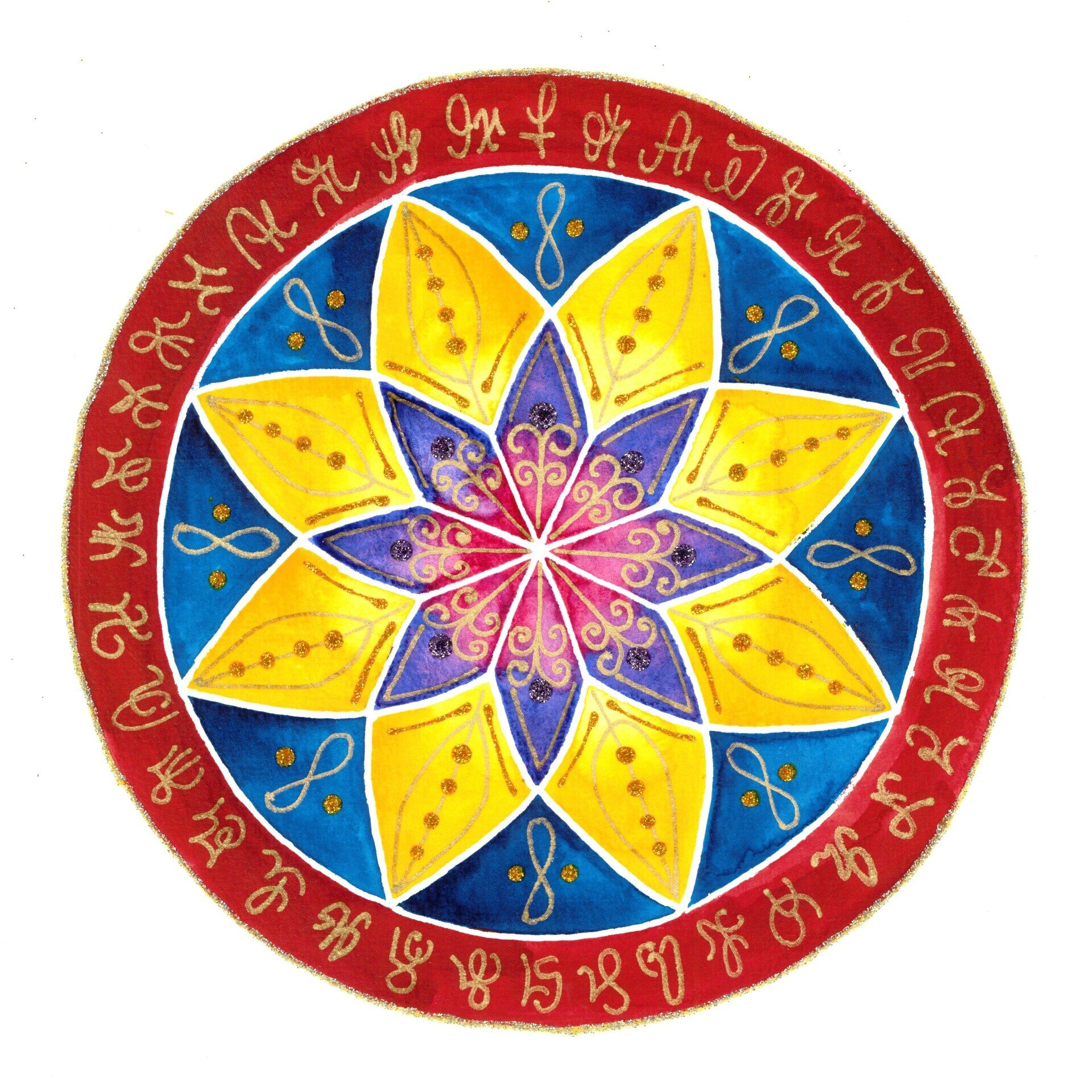 So zierte sie immer wieder mal Bilder von mir, mal geriet sie fast in Vergessenheit, dann war sie wieder ganz präsent in meinen Mandalas zu finden. Bei einer Sitzung vor über 20 Jahren wurde mir gesagt, es seien Heilzeichen aus einer meiner Inkarnationen und ich hätte bereits damit gearbeitet. Doch mehr wusste ich darüber bisher nicht.